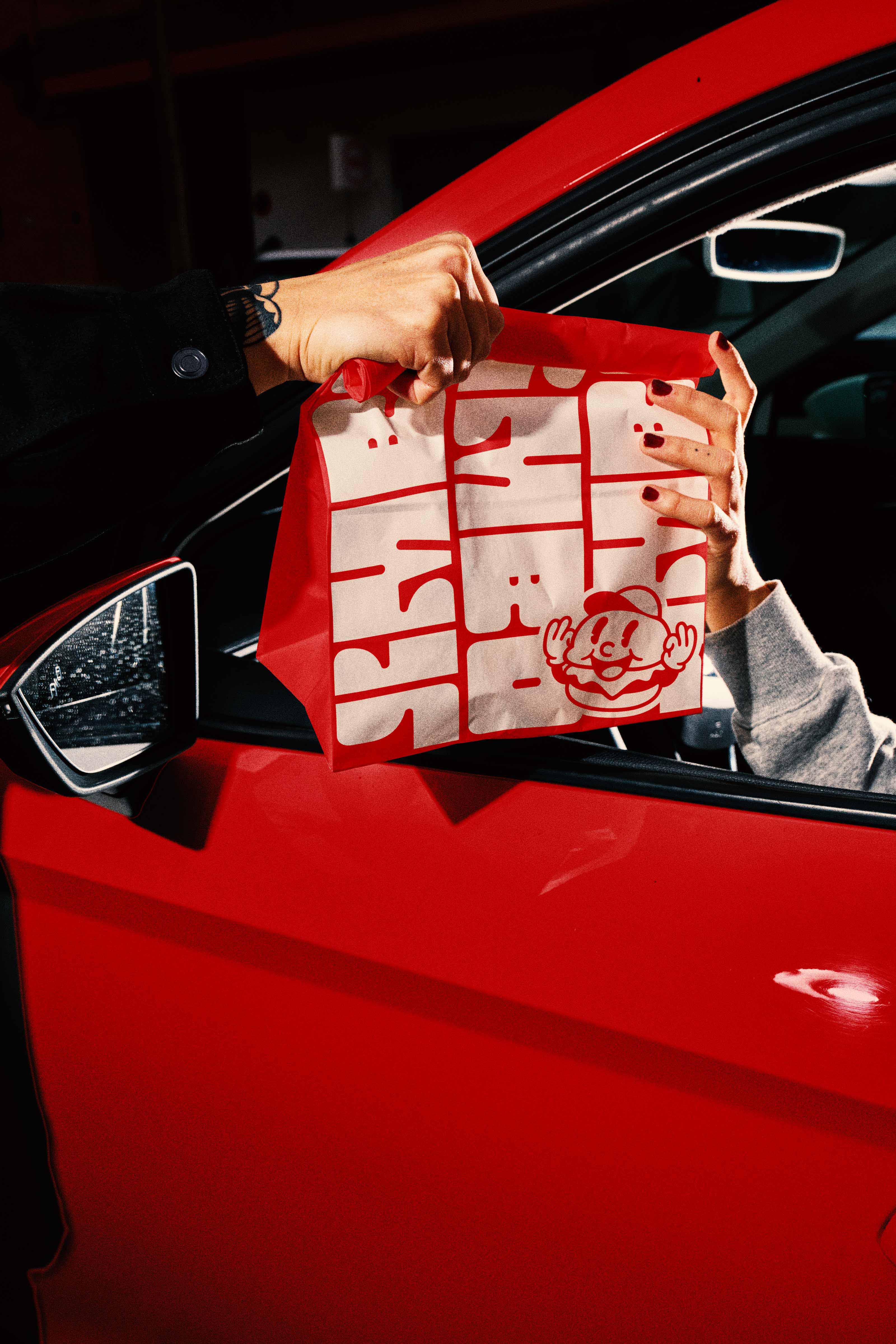 JIMBO musste knallen. Rot, das dich in den Magen boxt. Typo, die mehr schreit als der Typ hinter der Theke. Ein Maskottchen, halb Comic, halb Wahnsinn. Überall einsetzbar und nie zu übersehen. Vom Menü bis zum Packaging. Alles schreit nach Aufmerksamkeit, ohne billig zu wirken. Erinnerst du dich, wie sich Fast Food mal angefühlt hat? Genau so. Nur lauter.